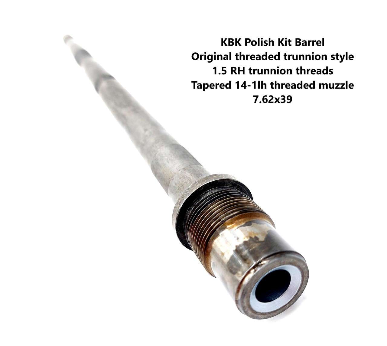 Polish KBK Chrome Lined Barrel 16.330″ reference length. Trunnion threads are 26mm-1.5 right hand with a 14-1lh threaded muzzle.