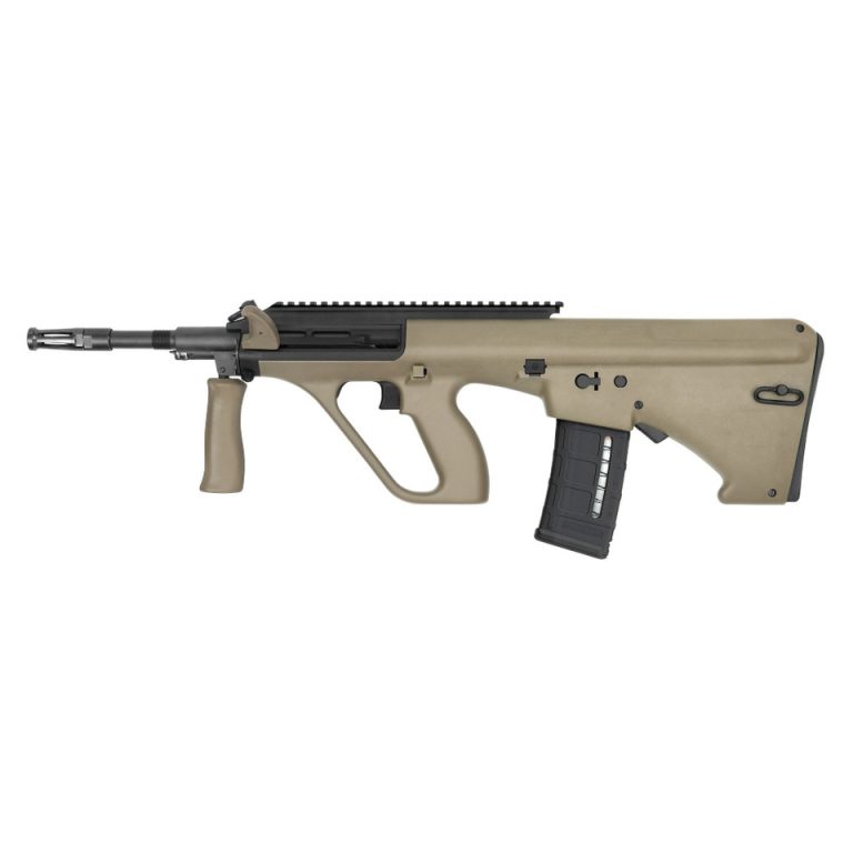 The iconic bullpup-style Steyr AUG has been one of the most recognizable rifles in the world since its adoption by the Austrian army in 1977 and is now available for civilian use as the Steyr AUG A3 M1, an ambidextrous rifle platform with an adjustable short-stroke, gas-piston operation chambered for 5.56x45mm (.223 Remington). The multi-configurable M1 variant of the AUG A3 platform is the latest generation of the venerated bullpup platform. Utilizing an optics attachment platform similar to the rare and much-sought-after AUG A2, the AUG A3 M1 is available from the factory with an Extended Rail. The AUG A3 M1 boasts an overall length of just 28.15 inches, including its 16-inch heavy barrel, making it at least 8 inches shorter than an M4 carbine with a comparable-length barrel. The short-stroke gas-piston operation of the AUG runs exceptionally cleaner by nature because all of the operational exhaust gas vents out of the front of the rifle. The AUG’s matching, yet opposed, stainless steel operation and guide rods affixed to the bolt carrier glide effortlessly inside the receiver for unparalleled smoothness in operation as well as exceptional reliability. Dual gas-adjustment settings ensure its operation, even with the dirtiest ammunition and in adverse conditions. The AUG A3 M1 has all the classic features and benefits that established it as the pinnacle of modern rifle design, including expedited disassembly as well as simple conversion to left-hand operation, which requires replacement of the standard bolt with the optional left-eject bolt and swapping the ejection-port cover. It also features a quick-change barrel with a collapsible forward grip as well as a two-position cross-bolt safety that locks the trigger. The AUG A3 M1 stock, cocking piece and forward grip are made of highly durable synthetic and are available in Black, Green, Mud and White colors. This model uses STANAG type magazines (standard AR-15 magazines) and comes with one 30 round PMAG.